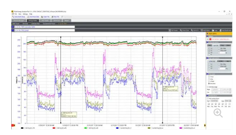 Energy Analyze Plus 애플리케이션 소프트웨어: 자동 보고 기능을 통해 에너지 소비 및 전력 품질 상태의 모든 측정 세부 사항을 다운로드하여 분석할 수 있습니다.